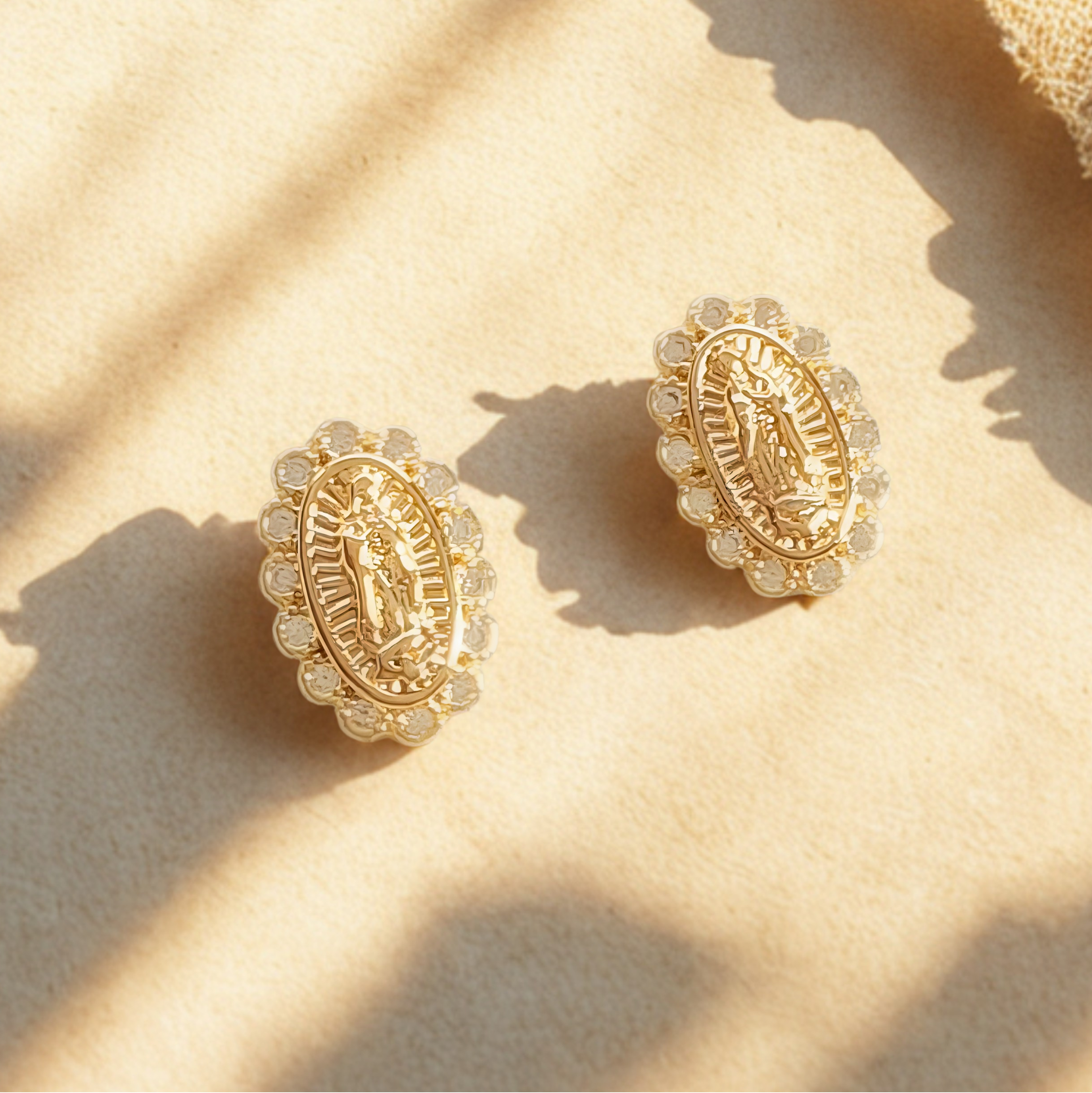 The Guadalupe Halo Stud Earrings honors the miraculous 1531 apparition of Mary to St. Juan Diego, whose tilma still displays her image in Mexico City today. Widely known as Mother of the Americas, her message of compassion and protection continues to inspire countless faithful around the world.